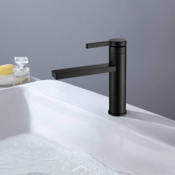 Single Handle Single Hole Bathroom Faucet with Spot Resistant in Matte Black