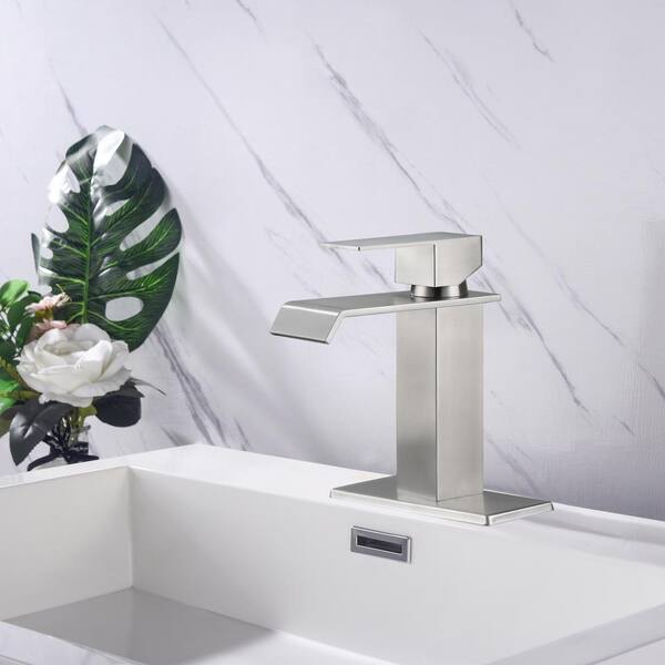 Single Handle Wall Mounted Bathroom Faucet in Brushed Nickel