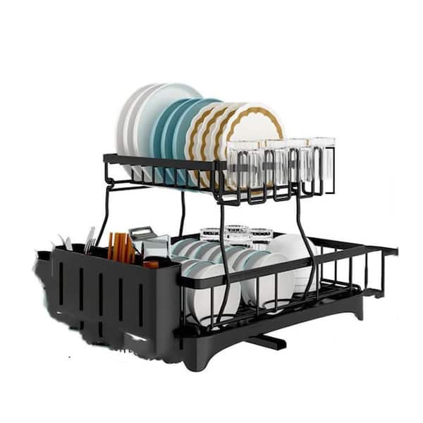 Stainless Steel Dish Drying Rack with Drainboard and Utensil HoldersDetachable Countertop Dish Rack for Kitchen