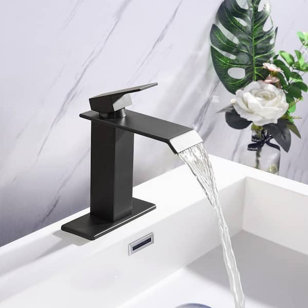 Waterfall Spout Bathroom Faucet, Single Handle Bathroom Vanity Sink Faucet