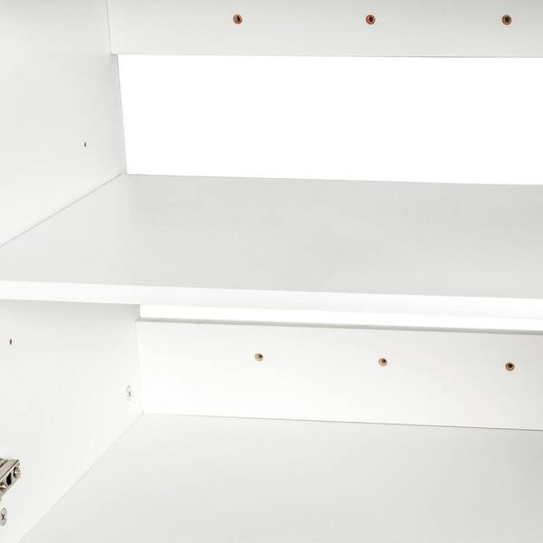 White and Brown Solid Storage Cabinet with Gold Handles: Drawer Dresser, Bar Cabinet, Buffet Server Console