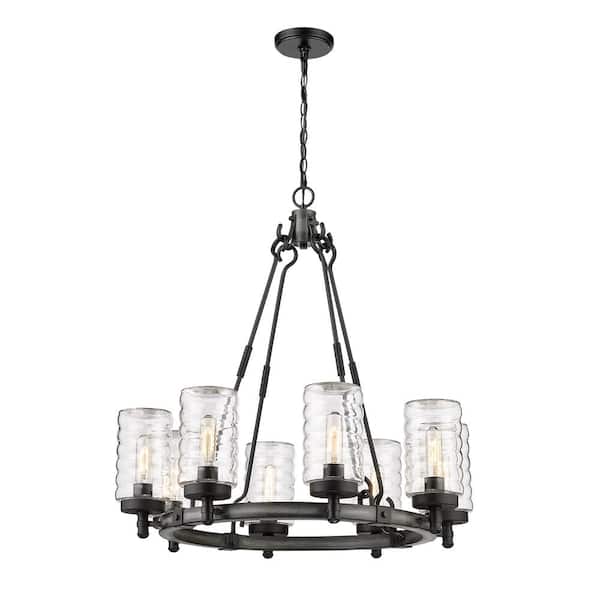Tahoe 8-Light Ashen Barnboard Gray Outdoor Pendant with Clear Glass Shade
