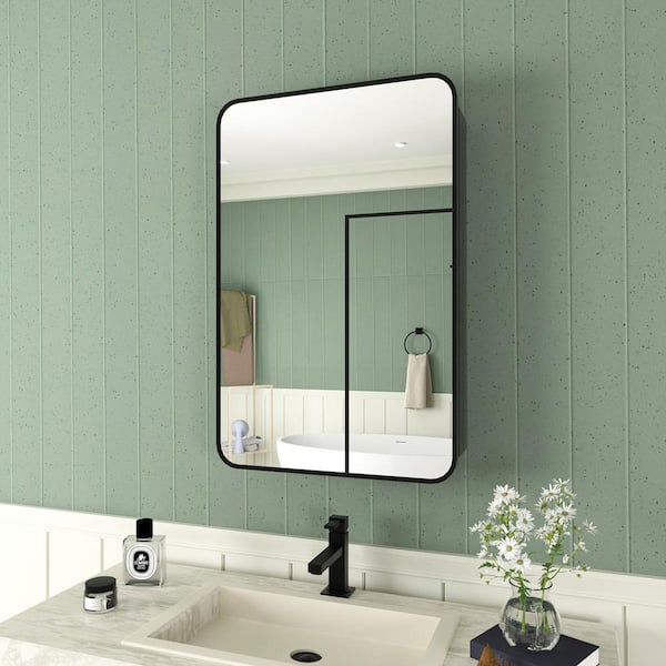 20 in. x 26 in. Framed Recessed or Surface-Mount Rectangular Matte Black Aluminum Medicine Cabinet with Mirror