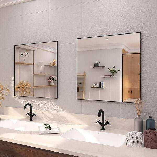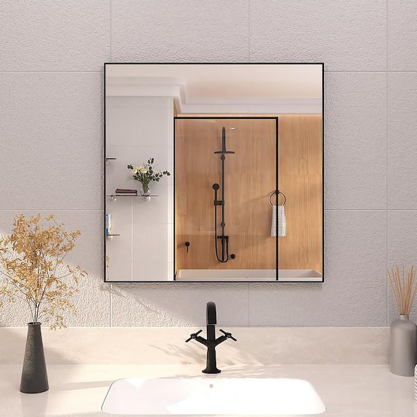 30 in. W x 30 in. H Rectangular Framed Wall Bathroom Vanity Mirror in Matte Black