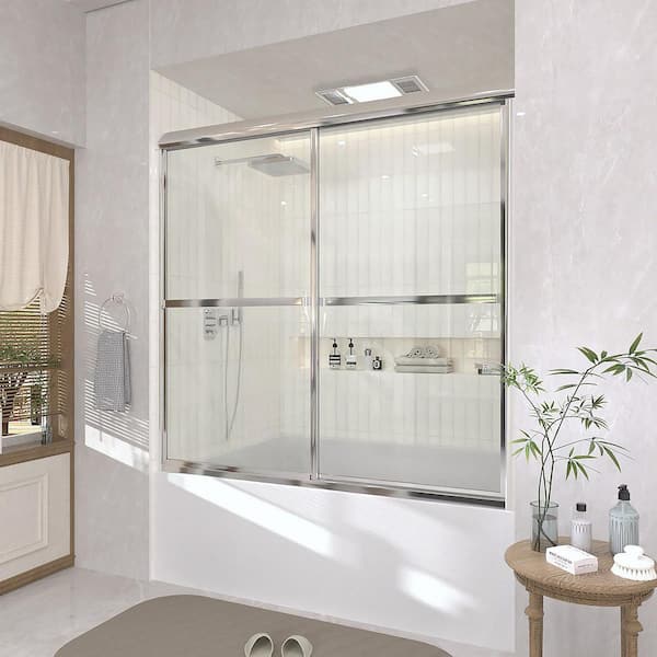 59 in. W x 56 in. H Sliding Framed Tub/Shower Door in Chrome with Clear Glass and Handles