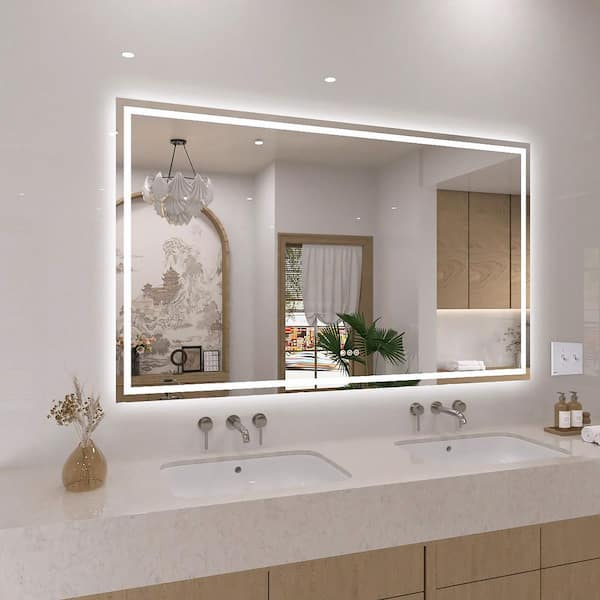 60 in. W x 36 in. H Rectangular Frameless LED Wall Bathroom Vanity Mirror