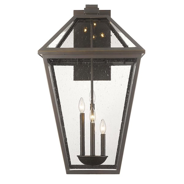 Talbot 19.5 in. 4-Light Outdoor Wall Sconce Oil Rubbed Bronze with Seedy Glass Shade