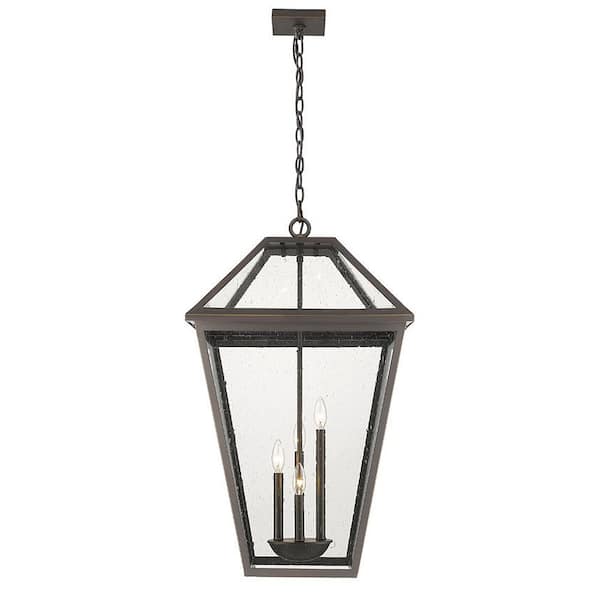 Talbot 4-Light Oil Rubbed Bronze Outdoor Lantern Pendant with Seedy Glass Shade