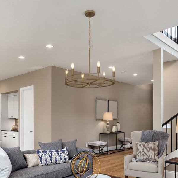 Tallant 23 in Plug and Play 6-Light Lacquered Brass Chandelier