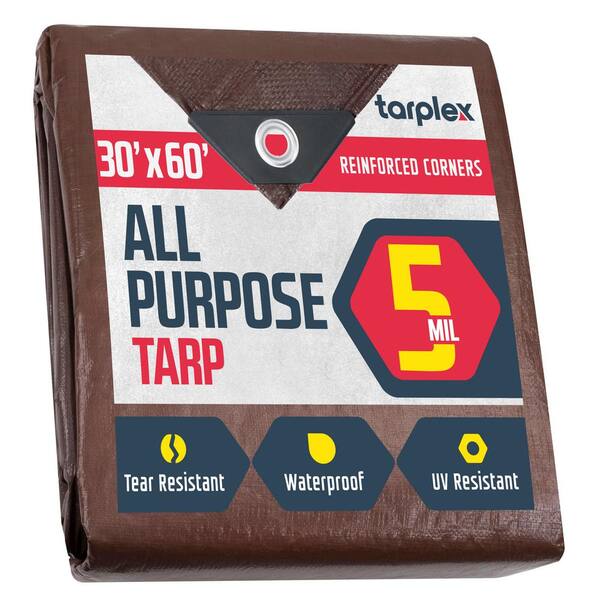 Tarplex 30 ft. x 60 ft. Greater Brown All Purpose Tarp 5 Mil Poly, Waterproof UV Resistant for Patio Pool Cover Roof