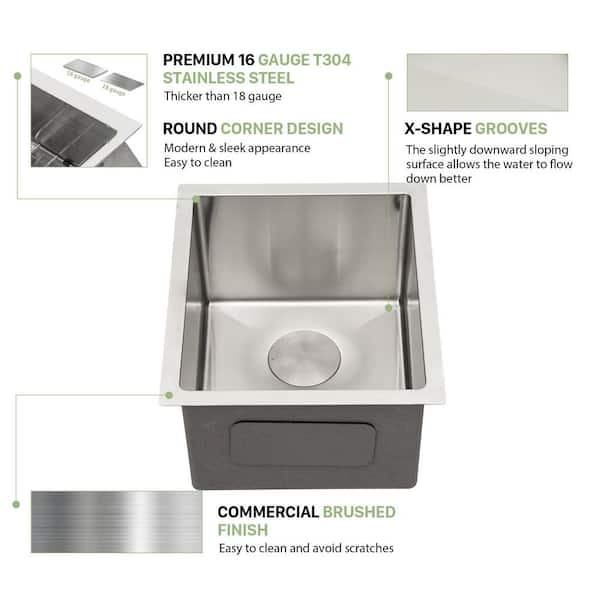 15 in. Undermount Single Bowl 16 Gauge Brushed Nickel Stainless Steel Kitchen Sink with Bottom Grids