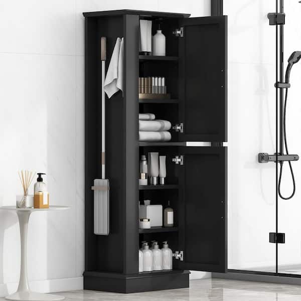 21 in. W x 14 in. D x 68 in. H Black MDF Freestanding Tall Linen Cabinet with Adjustable Shelf and Hook