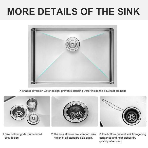 27 in. Undermount Single Bowl 16 Gauge Brushed Nickel Stainless Steel Kitchen Sink with Dish Grid and Drying Rack