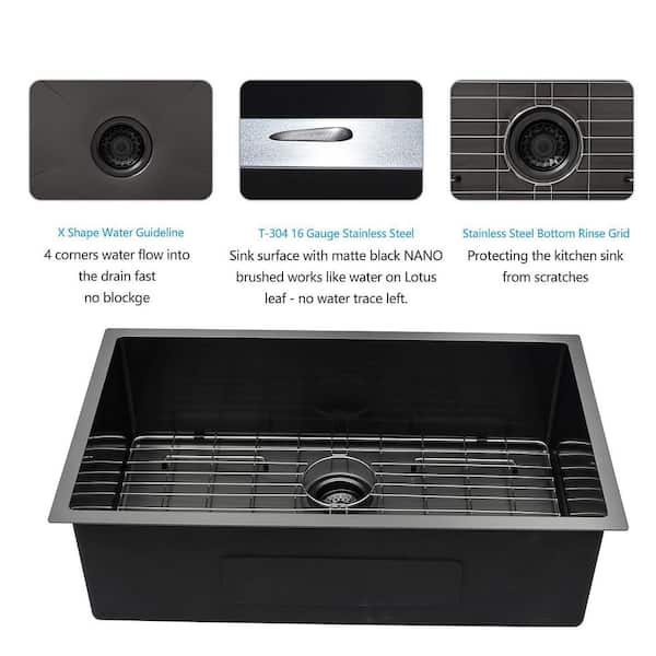28 in. Undermount Single Bowl 16 Gauge Gunmetal Black Stainless Steel Kitchen Sink with Drying Rack