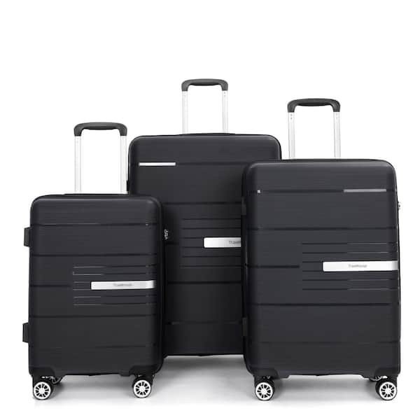 3-Piece Black Polypropylene Lightweight Hardside Spinner Luggage Set with TSA Lock (20/24/28 in. )