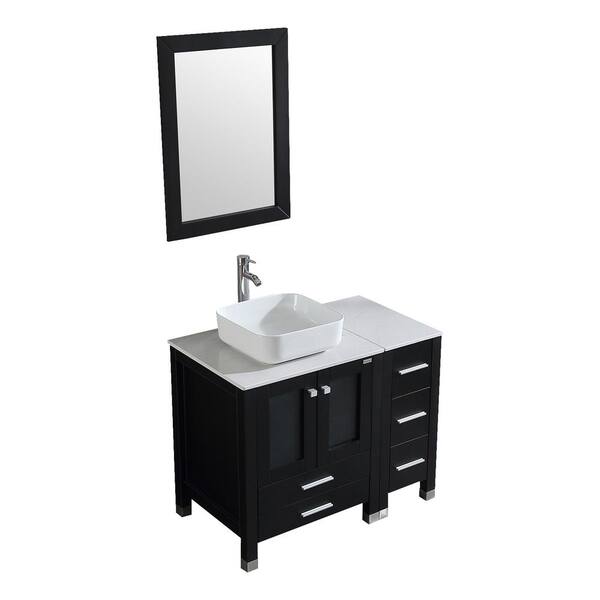 36 in. W x 21.7 in. D x 29.5 in. H Single Sink Bath Vanity in Black with White Top and Mirror