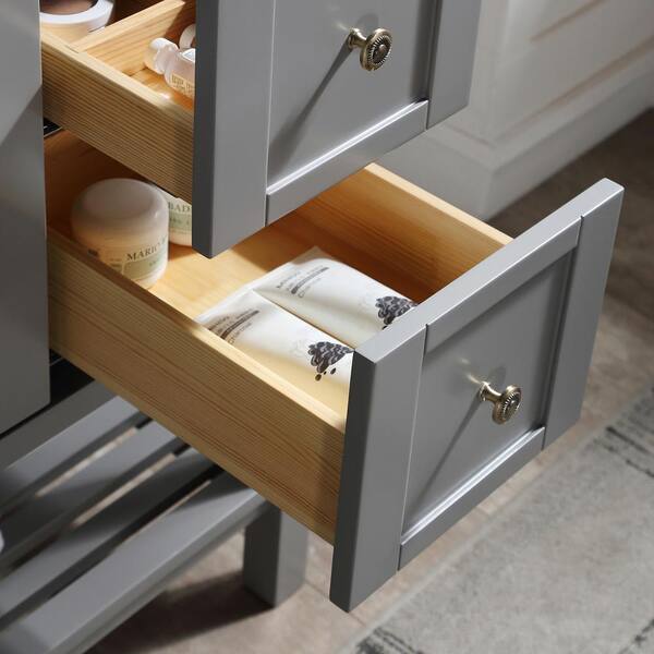 36 in. W x 22.05 in. D x 39.8 in. H Single Sink Bath Vanity Set in Gray with White Marble Top and Mirror