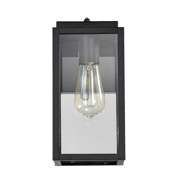 4.72 in. W 1-Light Outdoor Matte Black Wall Sconce with Dusk to Dawn Sensor and Clear Glass