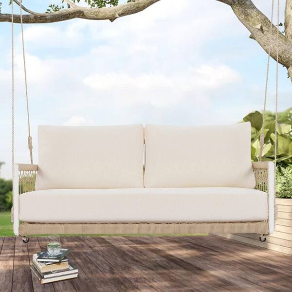 1-Piece Woven Rope Outdoor Swing Sofa with Soft Cushions for Patio, Courtyard and Balcony, Beige