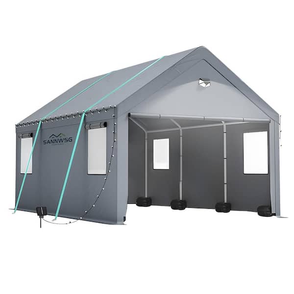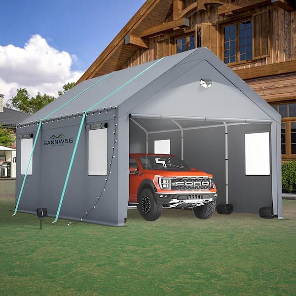 10ft. W x20ft. D Steel Carport Canopy Without Floor in Gray with Windows and All-Season Tarp Cover,Metal Roof,Side Walls
