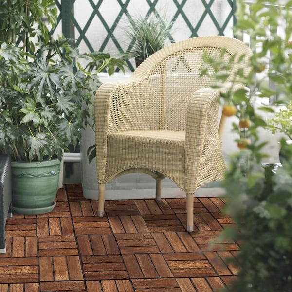 12 in. x 12 in. Outdoor Acacia Wood Flooring Interlocking Deck Tiles in Brown (10-Pieces)