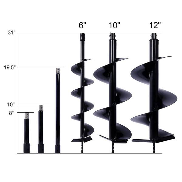 (15 cu. ft. ) 6 + 10 + 12 in. + Extension Rods Auger Drill Bit, Post Hole Digger Accessories