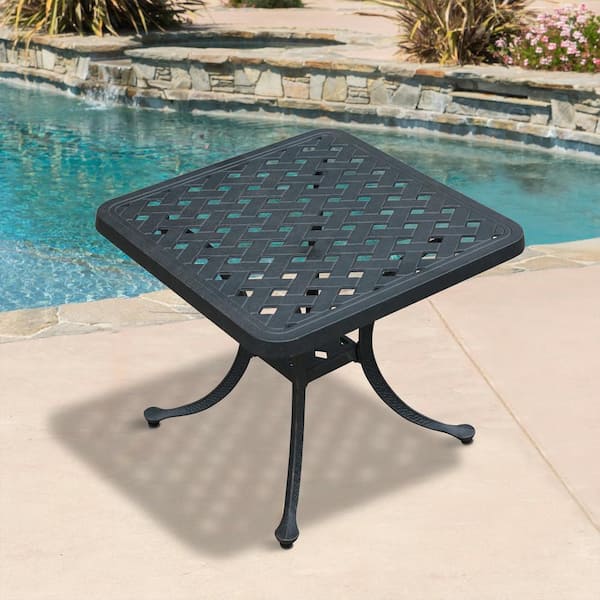 18 in. H Antique Bronze Square Cast Aluminum Outdoor Side Table Patio End Table in Black