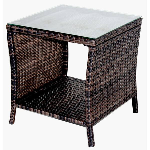 19.25 in. L x 19.25 in. W x 21 in. H Outdoor Wicker Patio Furniture Coffee Table with Clear Tempered Glass