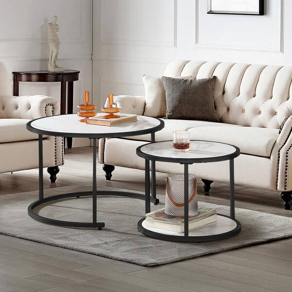 27.16 in. Marble Pattern Coffee Table Set of 2