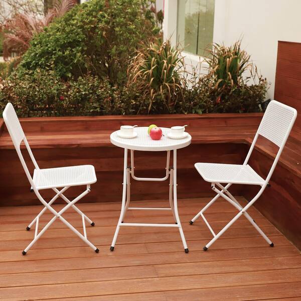 3 Piece Metal Folding Patio Bistro Set with Folding Patio Round Table and Chairs for Patio, Garden or Balcony - White