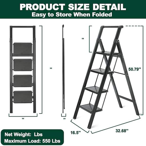 4-Step Steel Folding Step Stool Ladder 330 lbs. Load Capacity Type IA Duty Rating (6.72 ft. Reach Height), Black