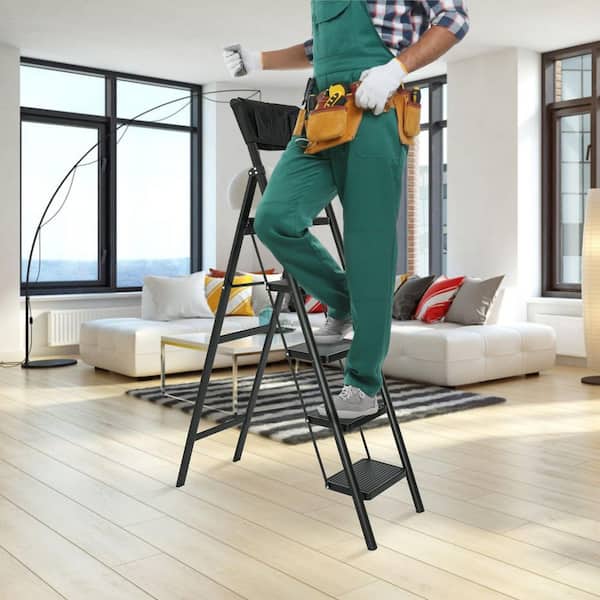 5 Step Ladder Steel Folding Step Stool Ladder with Tool Bag,330 lbs. Load Capacity (6.72 ft. Reach Height)