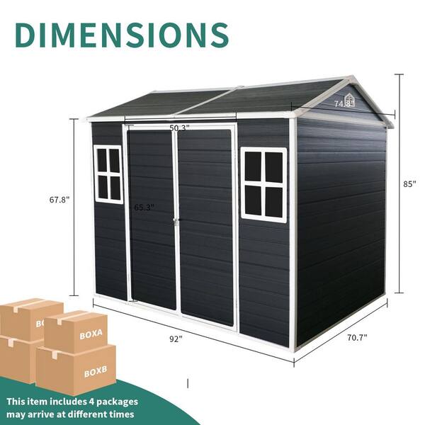 8 ft. W x 6 ft. D Resin Outdoor Storage Shed with Floor and 2 Window and Lockable Doors, Carbon Black