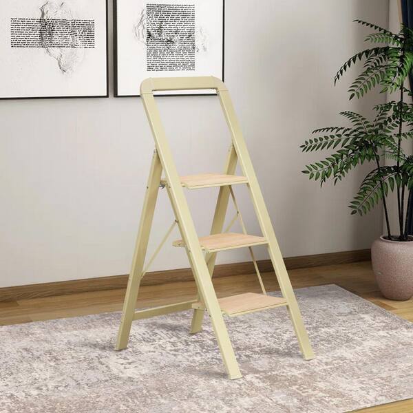 Aluminium 3 Step Ladder Folding Step Stool, Foldable Step Ladders, 580 lbs. Capacity, Light Beige