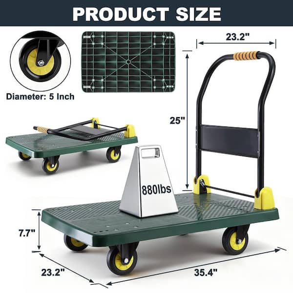 Foldable Push Hand Cart, Platform Truck with 880 lbs. Weight Capacity, Green