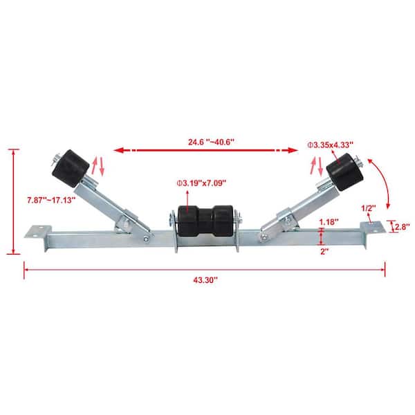 Steel Boat Trailer Bottom Support Bracket with Keel Rollers capacity 1760 lbs. Silver