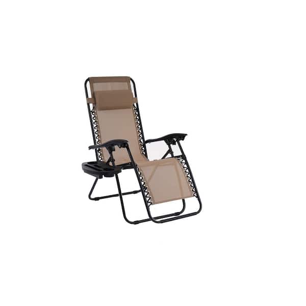 Taupe Adjustable Backrest Fabric Outdoor Lounge Chair in Black-3 Frame (Set of 2)
