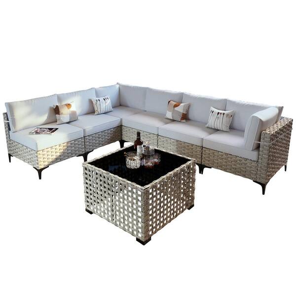 Taurus 7-Piece Wicker Outdoor Sectional Set with Light Gray Cushions