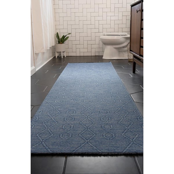 Alma Blue 2 ft. x 8 ft. Geometric Machine Washable Indoor Runner Rug