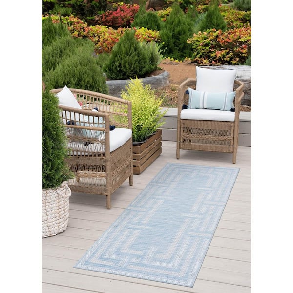 Bailey Aqua 2 ft. x 7 ft. Transitional Geometric Flat Weave Polypropylene Runner Indoor/Outdoor Runner Rug