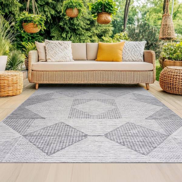 Bailey Gray 5 ft. x 7 ft. Transitional Geometric Flat Weave Polypropylene Rectangle Indoor/Outdoor Area Rug