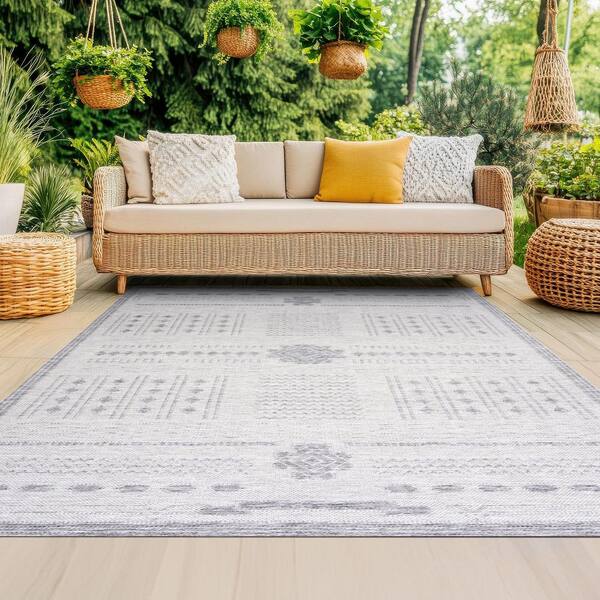 Bailey Gray 8 ft. x 10 ft. Transitional Geometric Flat Weave Polypropylene Rectangle Indoor/Outdoor Area Rug