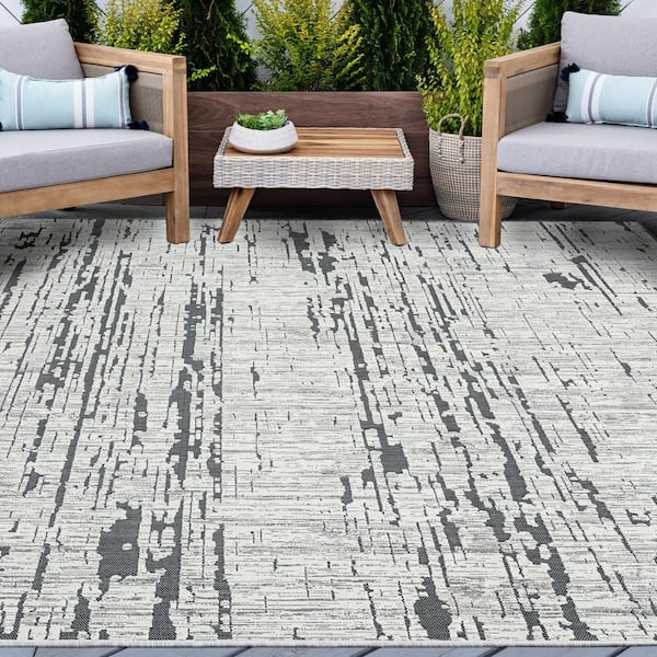 Breeze Stripe Black 5 ft. x 8 ft. Indoor/Outdoor Area Rug