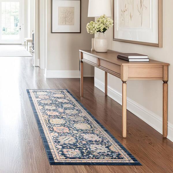 Crestwood Navy 2 ft. x 8 ft. Oriental Indoor Area Rug