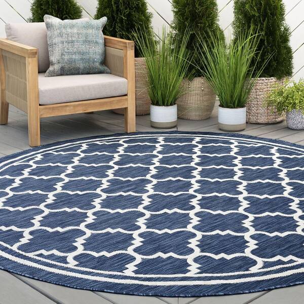 Eco Geometric Navy 6 ft. Round Indoor/Outdoor Area Rug