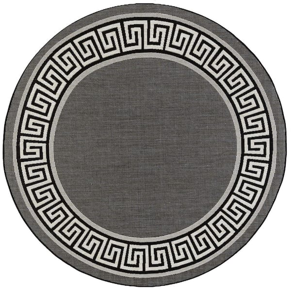 Eco Greek Key Black 6 ft. Round Indoor/Outdoor Area Rug