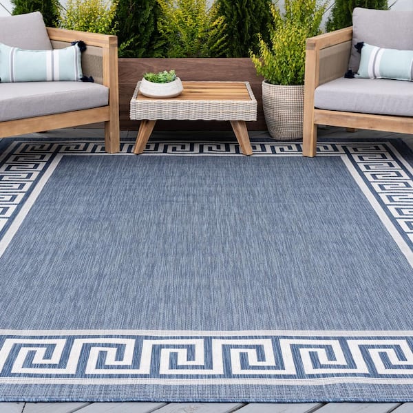 Eco Greek Key Blue 5 ft. x 8 ft. Indoor/Outdoor Area Rug