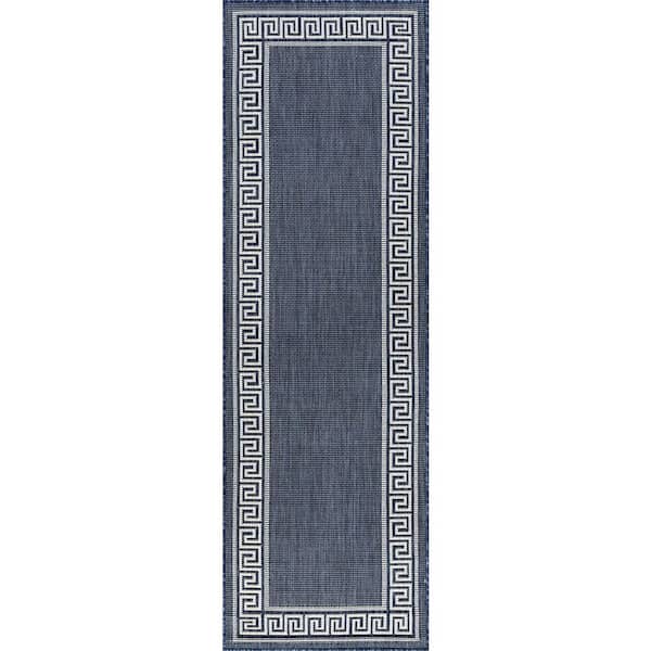 Eco Greek Key Navy 2 ft. x 8 ft. Indoor/Outdoor Runner Rug