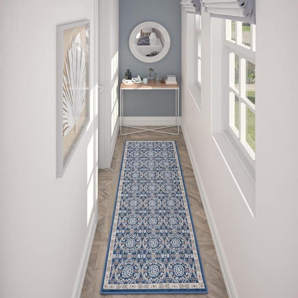 Hampton Brocade Navy 2 ft. x 10 ft. Indoor Runner Rug