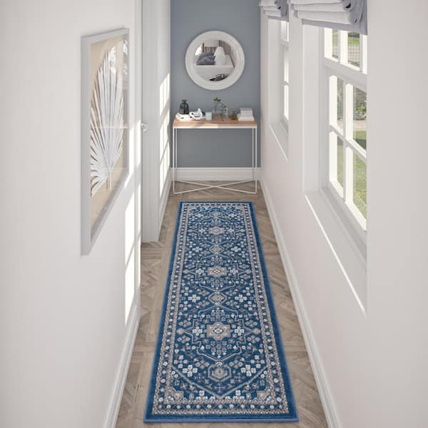 Hampton Oriental Navy 2 ft. x 8 ft. Indoor Runner Rug